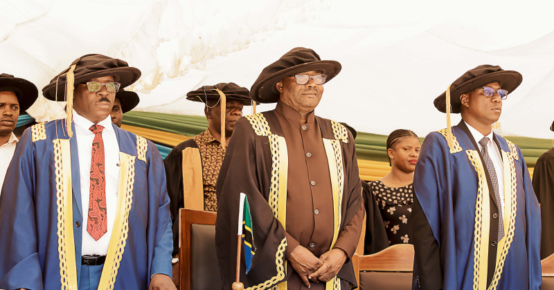 The Minister for Lands, Housing and Human Settlements Development, Hon. Leonard Akwilapo, together with the Chairman of ARIMO’s Advisory Board, Prof. Ernest Kihanga, and the Principal of ARIMO, Mr. Charles Saguda.